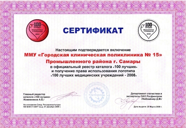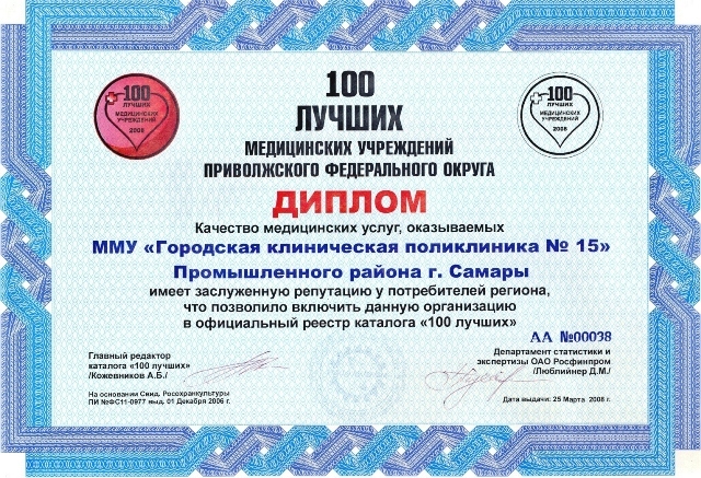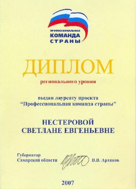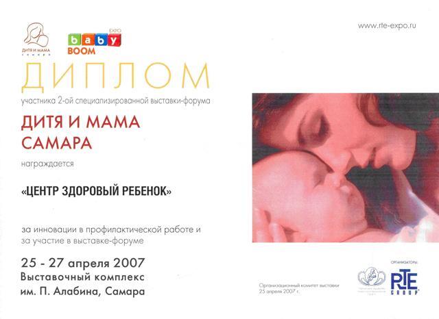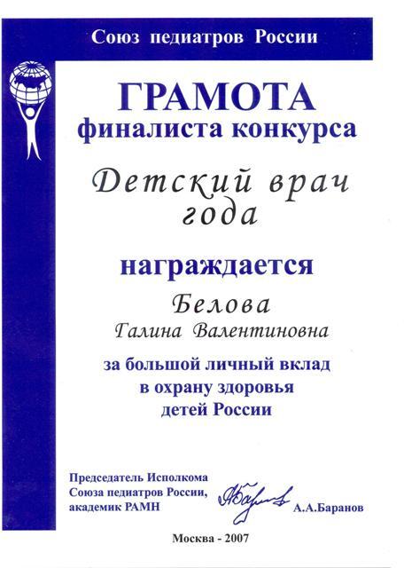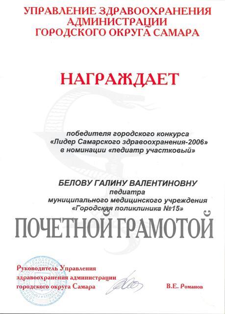 Почетная грамота победителя городского конкурса "Лидер Самарского здравоохранения-2006" в номинации "педиатр участковый"