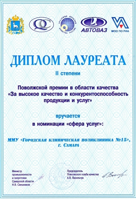 лауреата 2-ой степени Поволжской премии в области качества "За высокое качество и конкурентноспособность продукции и услуг