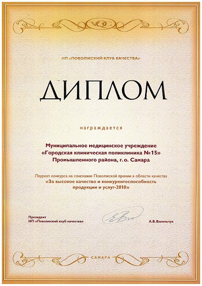Диплом лауреата конкурса на соискание Поволжской премии в области качества "За высокое качество и конкурентоспособность продукции и услуг-2010"
