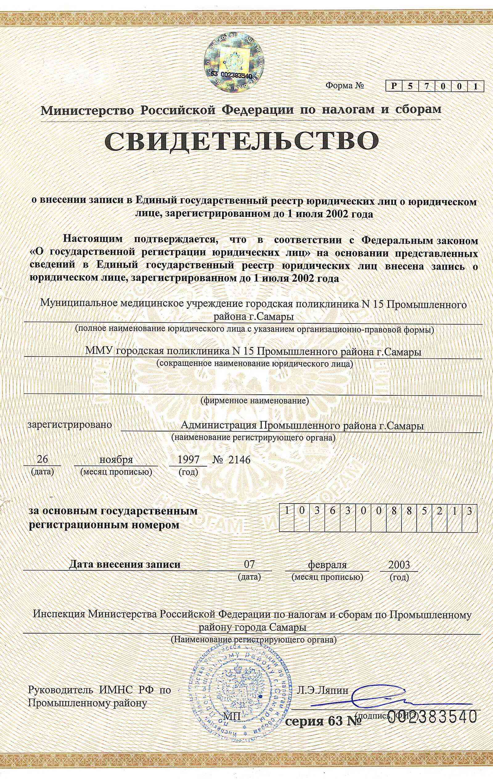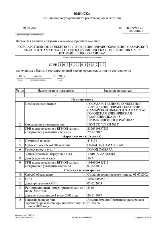 Свидетельство о регистрации Выписка из ЕГРЮЛ ГБУЗ СО "СГКП №15 Промышленного района" ИНН ГБУЗ СО "СГКП №15 Промышленного района" ЕГРЮЛ ГБУЗ СО "СГКП №15 Промышленного района"