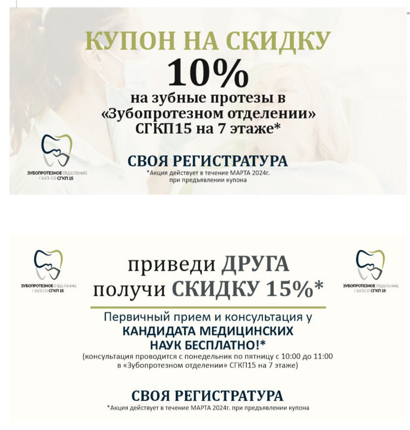 -Приведи ДРУГА - получи СКИДКУ 15% в «Зубопротезном отделении» СГКП15 на 7 этаже*