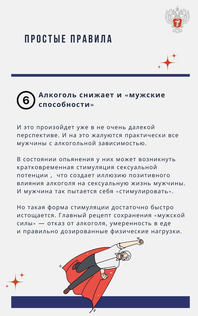 Подробнее о влиянии алкоголя, в том числе на мужское здоровье, читайте в наших карточках