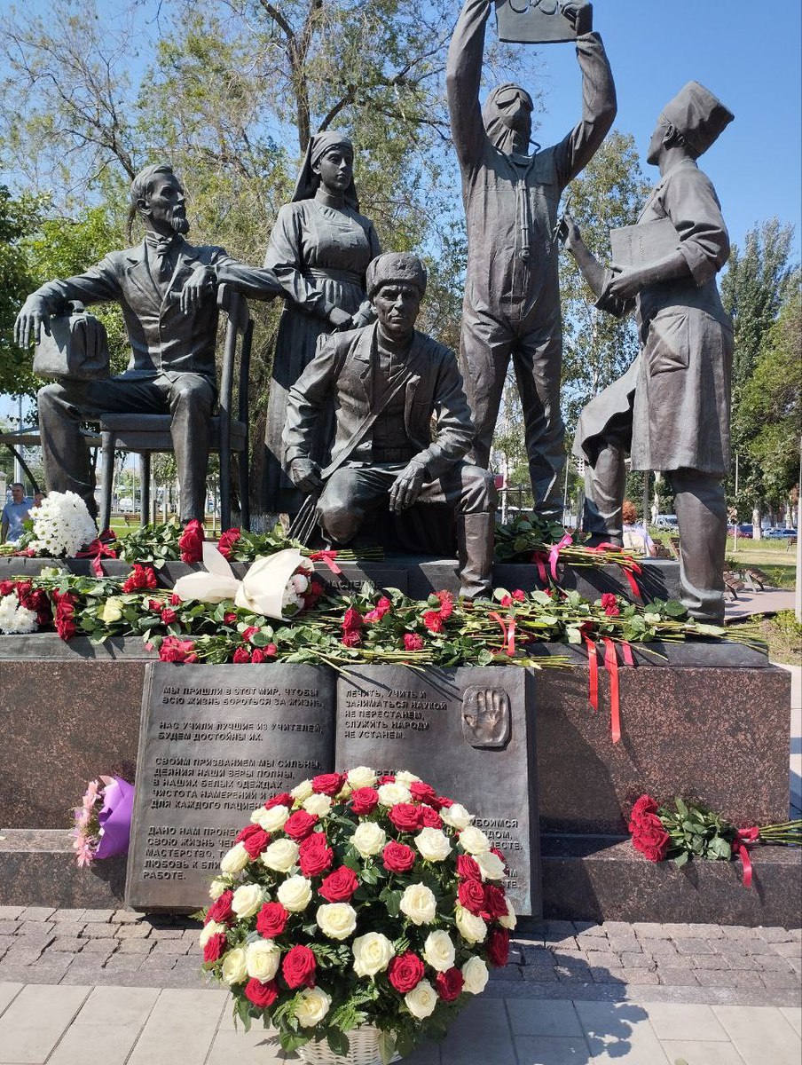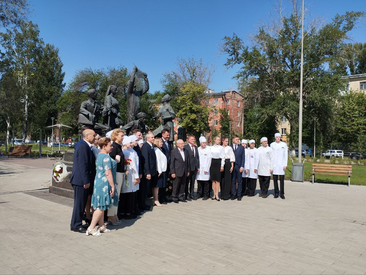 Сегодня 10 июня в парке Мира администрация поликлиники приняла участие в Торжественном возложении цветов к скульптурной композиции «Наследие и наставничество», приуроченном ко Дню медицинского работника.