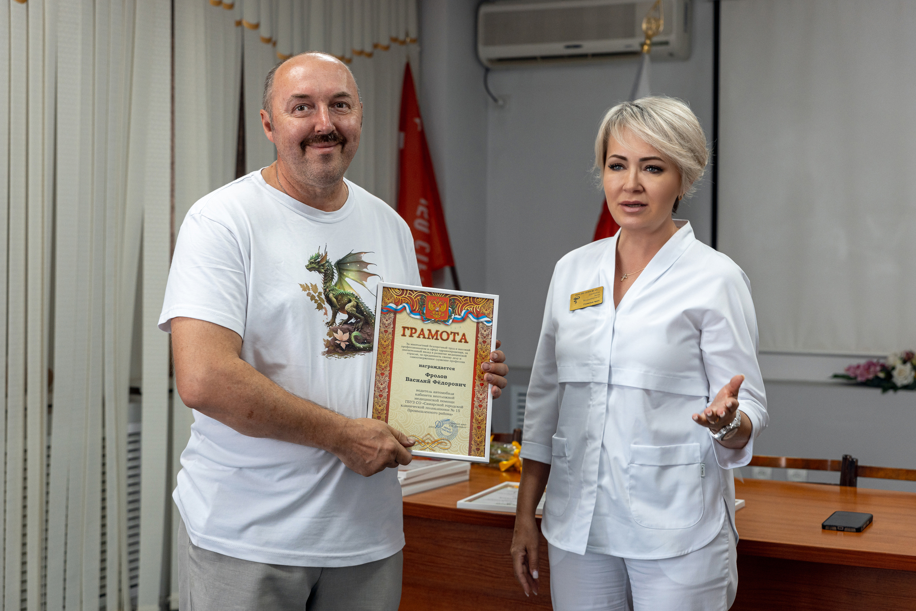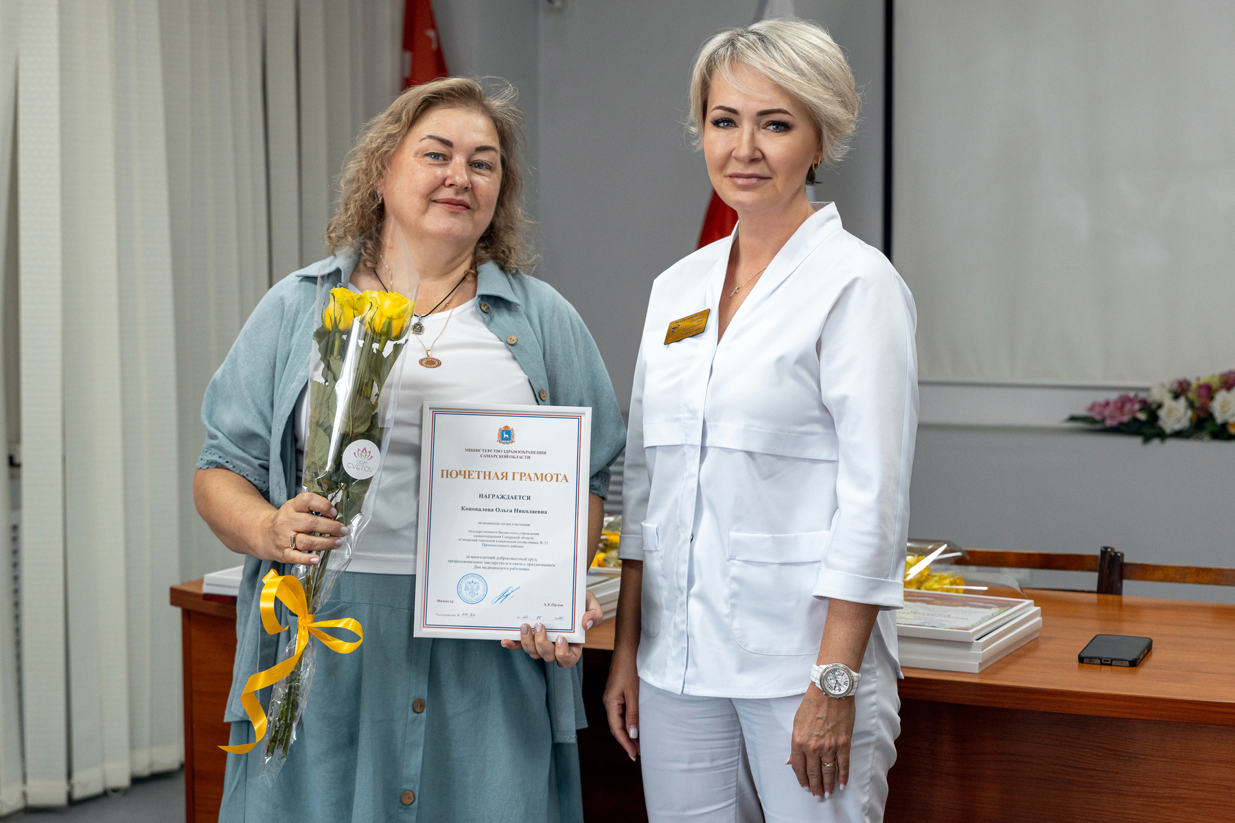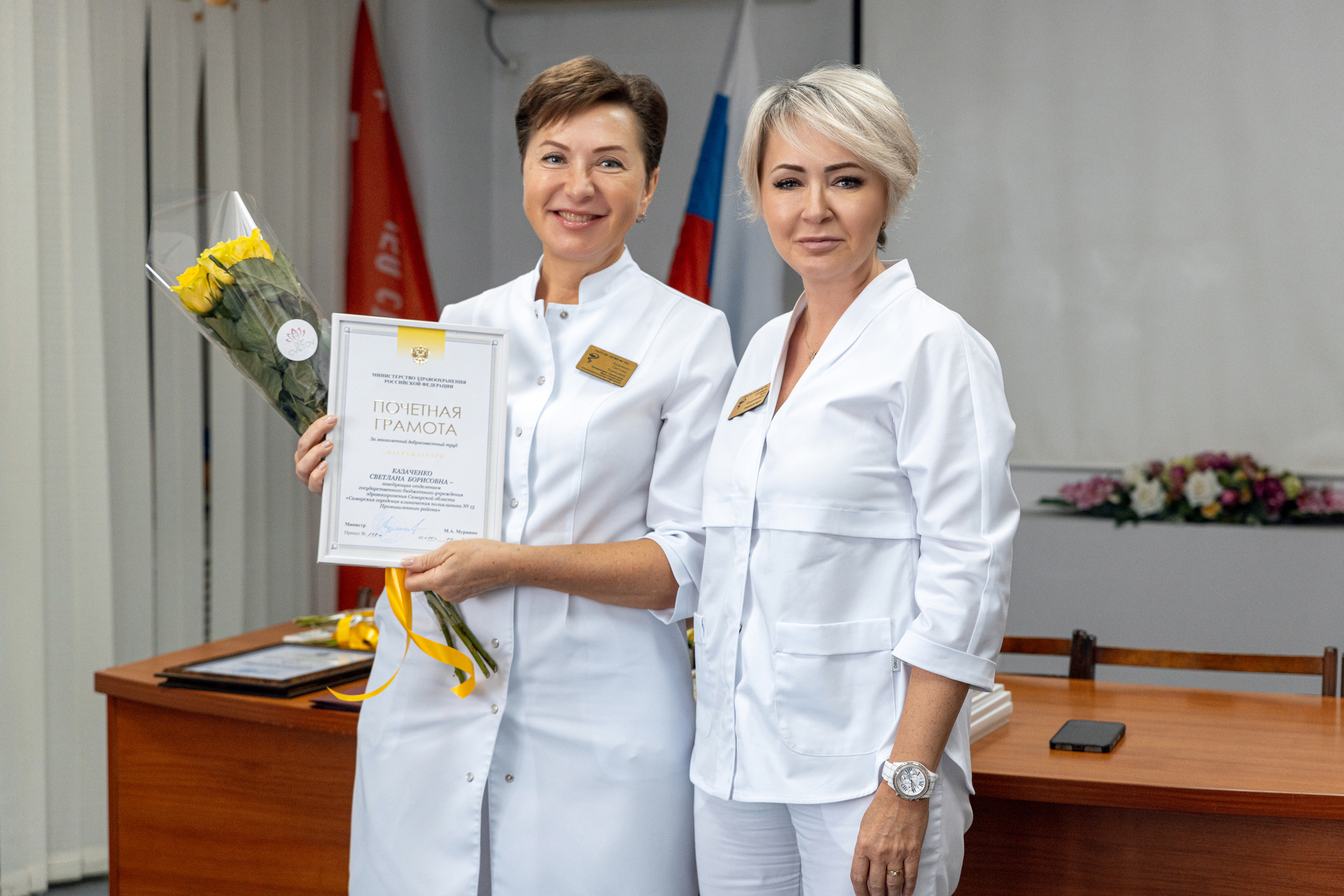 11 июня 2025 года прошло торжественное мероприятие в честь Дня медицинского работника. Главный врач Дзюбайло А.В. лично поздравила медицинских работников с профессиональным праздником и вручила заслуженные награды лучшим сотрудникам поликлиники.