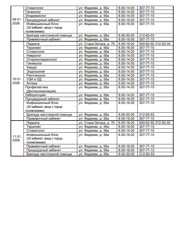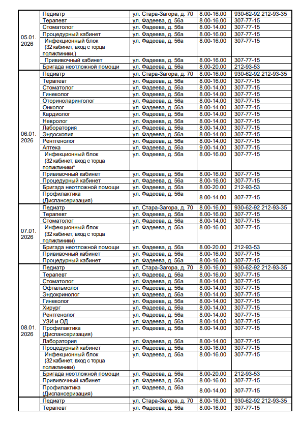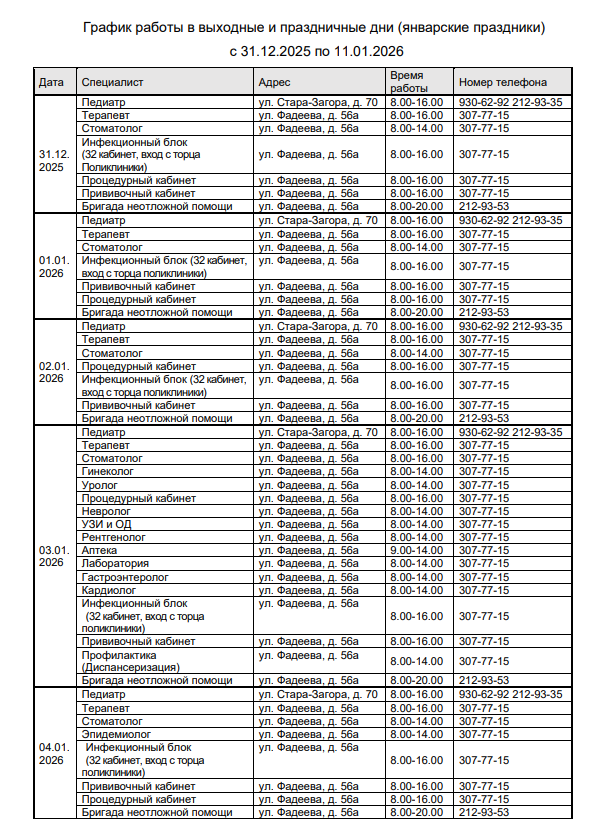 График работы в новогодние праздничные дни с 31.12 по 11.01