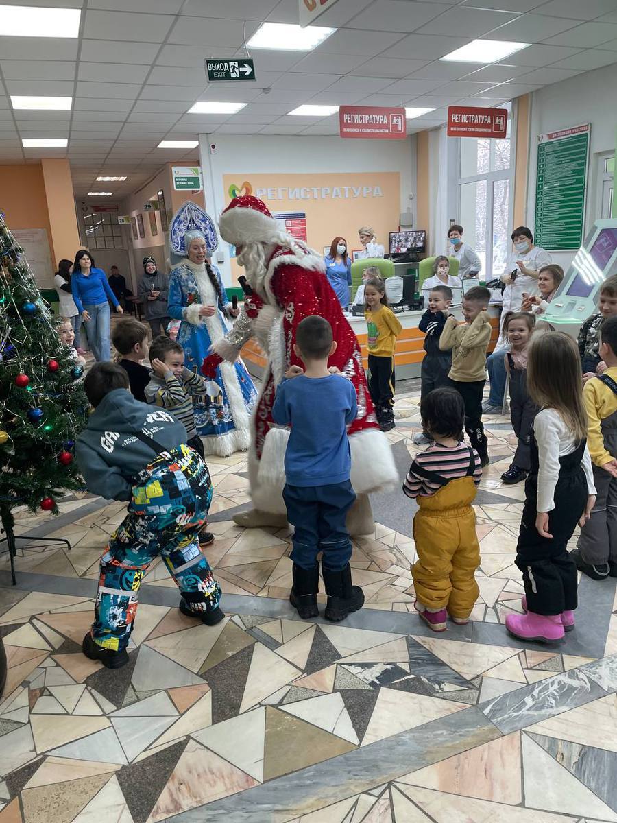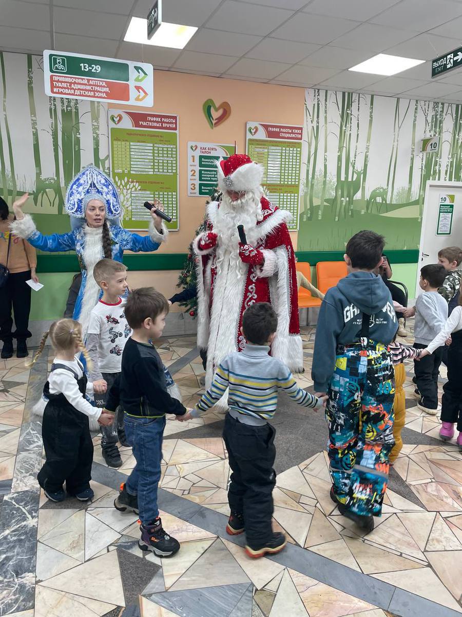 29.12.2025 детское отделение СГКП№15 по адресам ул. Стара Загора, д.70 и ул. Стара Загора, д.84а, проездом из своей резиденции посетили Дед Мороз и Снегурочка