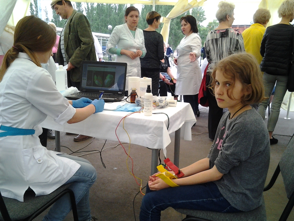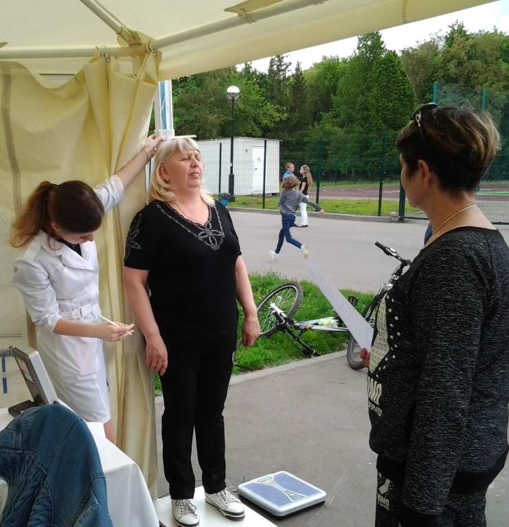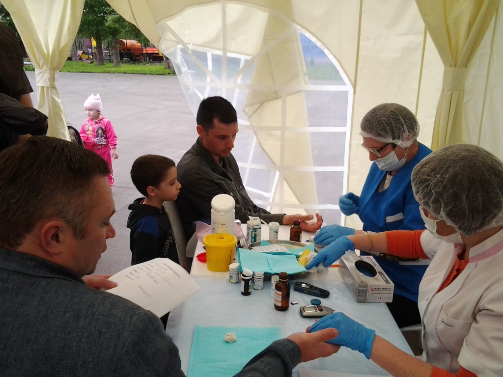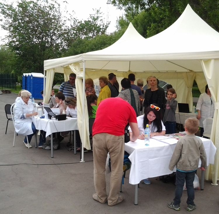 В солнечный день в парке им. Ю. Гагарина был развернут мобильный центр здоровья. Населению было предложено пройти обследование :