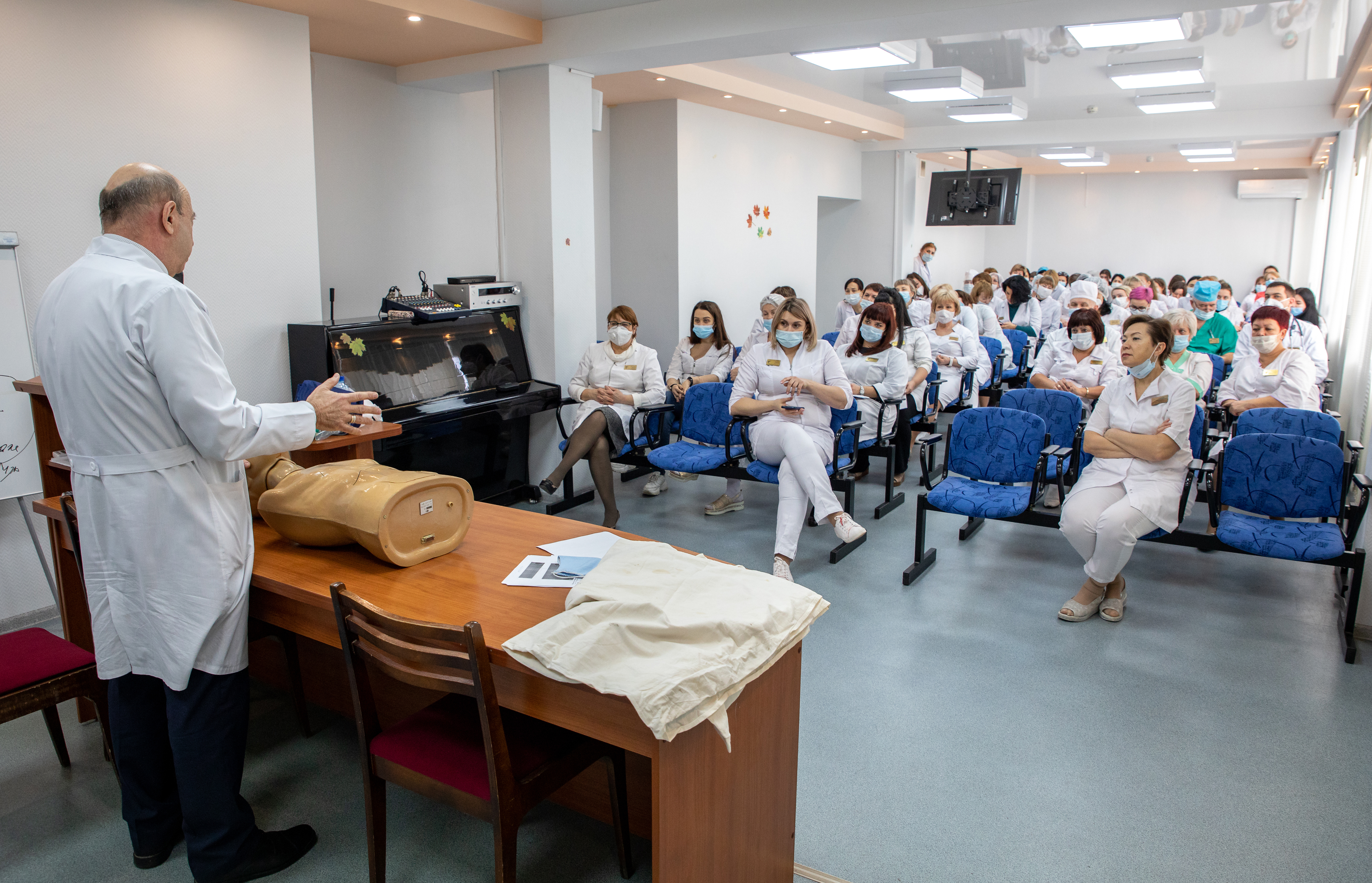 В целях готовности персонала к оказанию пациентам своевременной неотложной и экстренной медицинской помощи в праздничные и нерабочие выходные дни было проведено очередное занятие по обучению методике сердечно-легочной реанимации