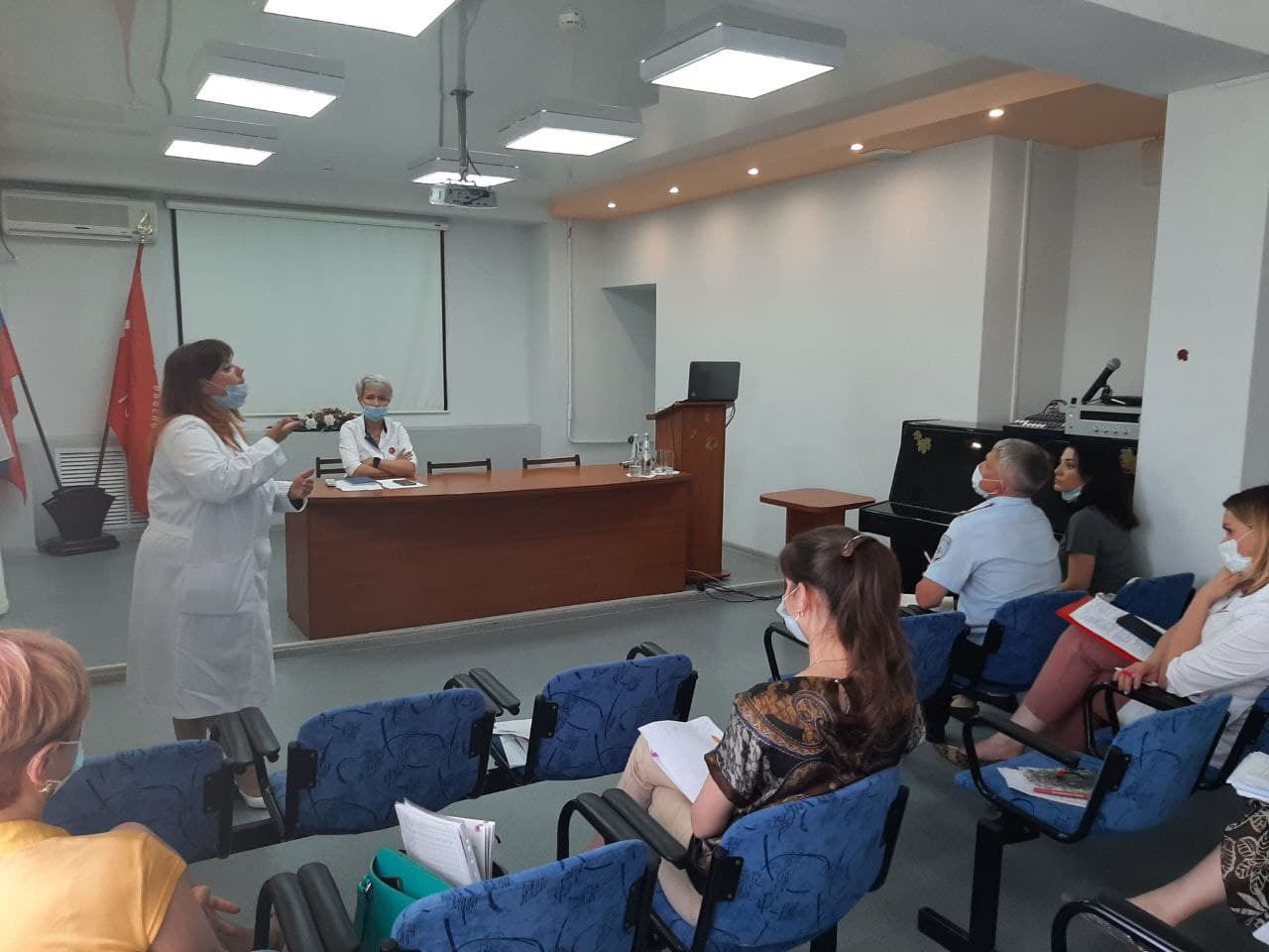 - Специалист Комплексного центра социального обслуживания населения (КЦСОН) Промышленного подразделения г. Самары — Туаева К.А. ознакомила присутствующих с основными задачами, стоящими перед социальной службой, ее техническими возможностями по реабилитации инвалидов и пожилых граждан. Было отмечено, что среди мероприятий, проводимых для пожилых граждан, огромным спросом пользуются спортивные занятия по скандинавской ходьбе, дыхательной гимнастике, художественное творчество, компьютерная и мобильная грамотность и ряд других направлений. Участникам совещания был предложен раздаточный материал в виде буклетов и памяток.