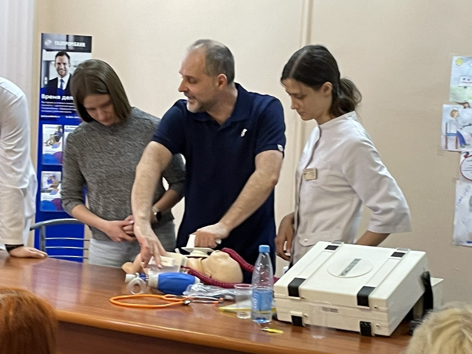 В детском отделении по адресу: Стара Загора 70, под руководством заведующего отделением реанимации и интенсивной терапии для новорожденных и недоношенных детей педиатрического корпуса ГБУЗ «СОКБ им. В.Д. Середавина», к. м. н. Аборина С. В. и врача-анестезиолога-реаниматолога отделения реанимации и интенсивной терапии для новорожденных и недоношенных детей Каткова И.В., проведено обучение - тренинг навыков, приёмов сердечно - легочной реанимации и оказанию неотложной помощи у детей.